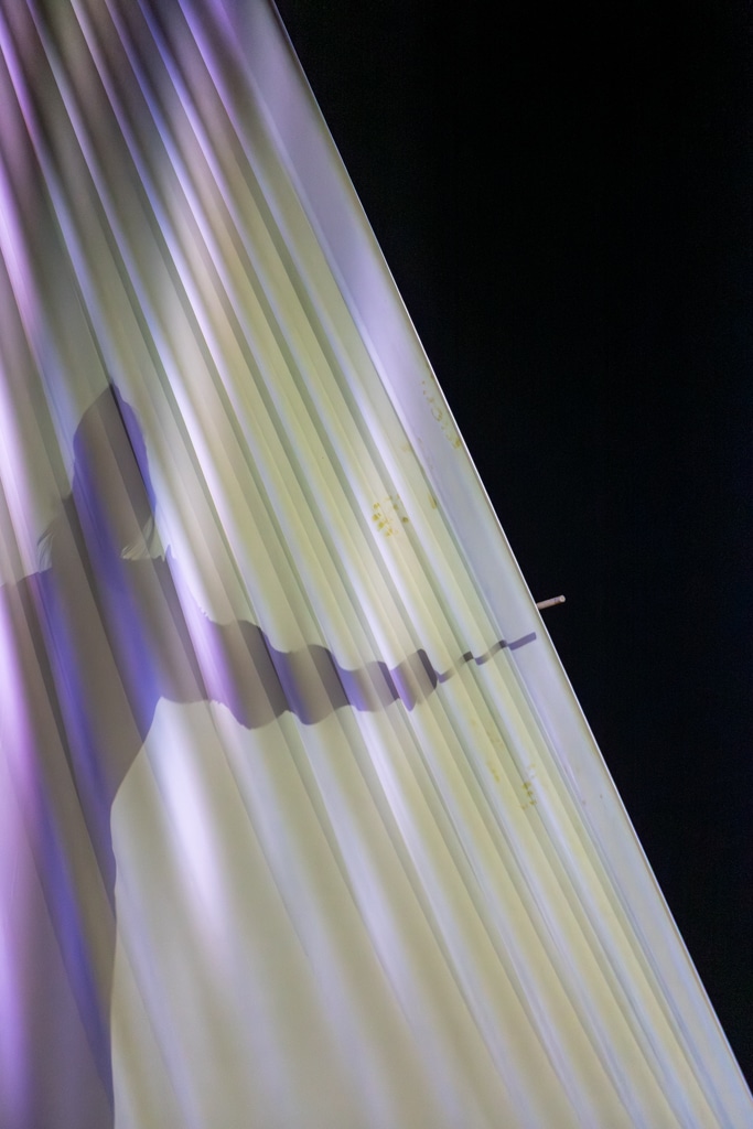 Diese Drehscheibe bewegt sich im Laufe des Abends an prominenten Stellen, sodass die Latexbahnen immer weiter gestreckt und verdreht werden – eine stilisierte, aber sehr eindrückliche Übersetzung der titelgebenden Schraube, die immer fester angedreht wird. Diese steht letztlich für die Protagonistin selbst (mit beeindruckender emotionaler Wucht von Eva Maria Amann verkörpert), die mental mehr und mehr angespannt ist und sich schließlich in der Geisterwelt des Landhauses Bly verliert.