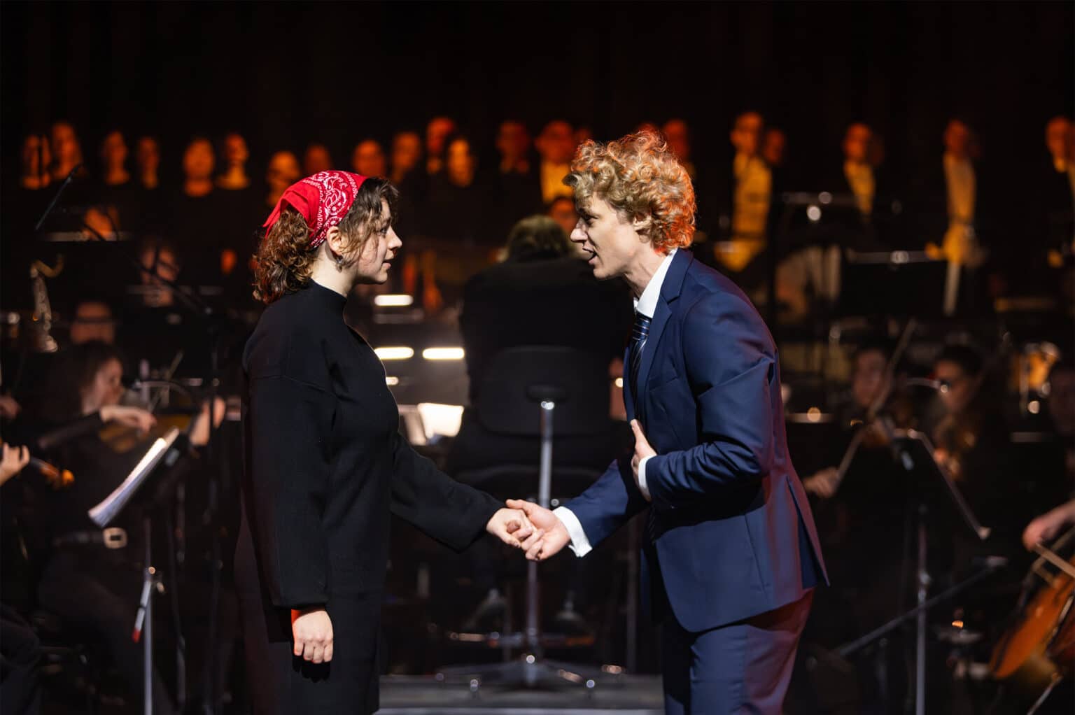 „Man spürt, dass der musikalische Gehalt sehr hoch ist“, ergänzt der Dirigent. „Das gefällt den Solist:innen und dem Orchester, die alle mit Begeisterung mitmachen.“ Dem kann Lorenz Höß nur zustimmen. „Die Nummern sind kurz und abwechslungsreich und sehr unterschiedlich im Charakter“, berichtet der Chordirektor. „Wir haben opernhafte Elemente, filmmusikalische Klänge, aber auch Musical zu singen – und manchmal sind wir ein Backgroundchor.“