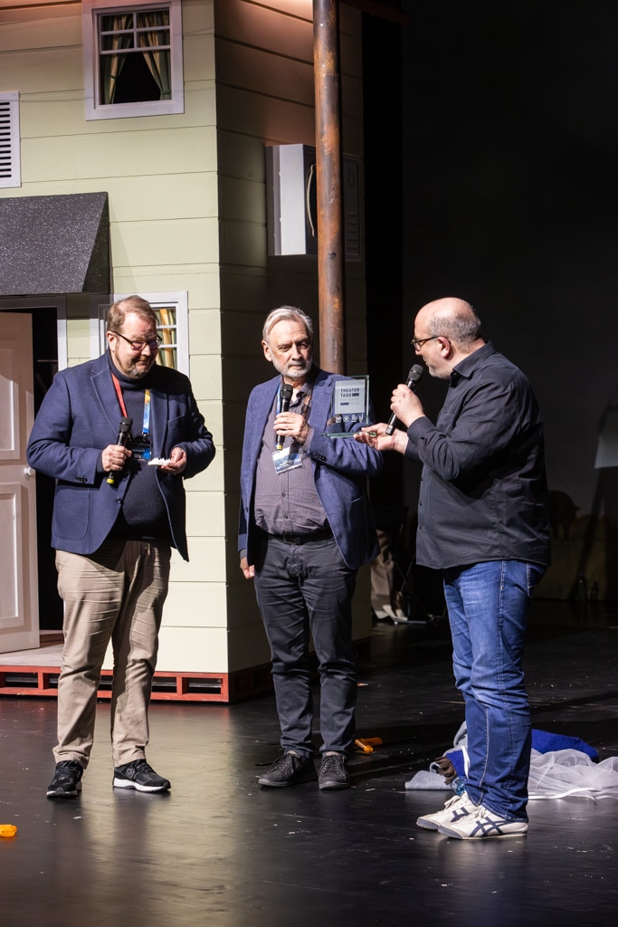 Nach dem Applaus gab es zum Abschluss der Theatertage Rheinland-Pfalz euphorische Dankesworte von Kulturstaatssekretär Prof. Dr. Jürgen Hardeck, der das Team des Theaters Koblenz für die große Gastfreundschaft und die reibungslose Organisation bei der Ausrichtung des Festivals lobte. Im Anschluss übergab der Koblenzer Intendant Markus Dietze den Staffelstab der Theatertage – in Form einer gläsernen Trophäe mit den Logos der vier teilnehmenden Mehrspartenhäuser des Landes – an Daniel Böhm vom Pfalztheater Kaiserslautern. Dort finden 2028 die nächsten Theatertage statt. Koblenz ist erst 2034 wieder an der Reihe – ein Termin, den sich die Theaterenthusiast:innen schon jetzt vormerken können. Auch dann wird es wieder viele anregende Produktionen aus den anderen Theatern von Rheinland-Pfalz in Koblenz zu sehen geben.