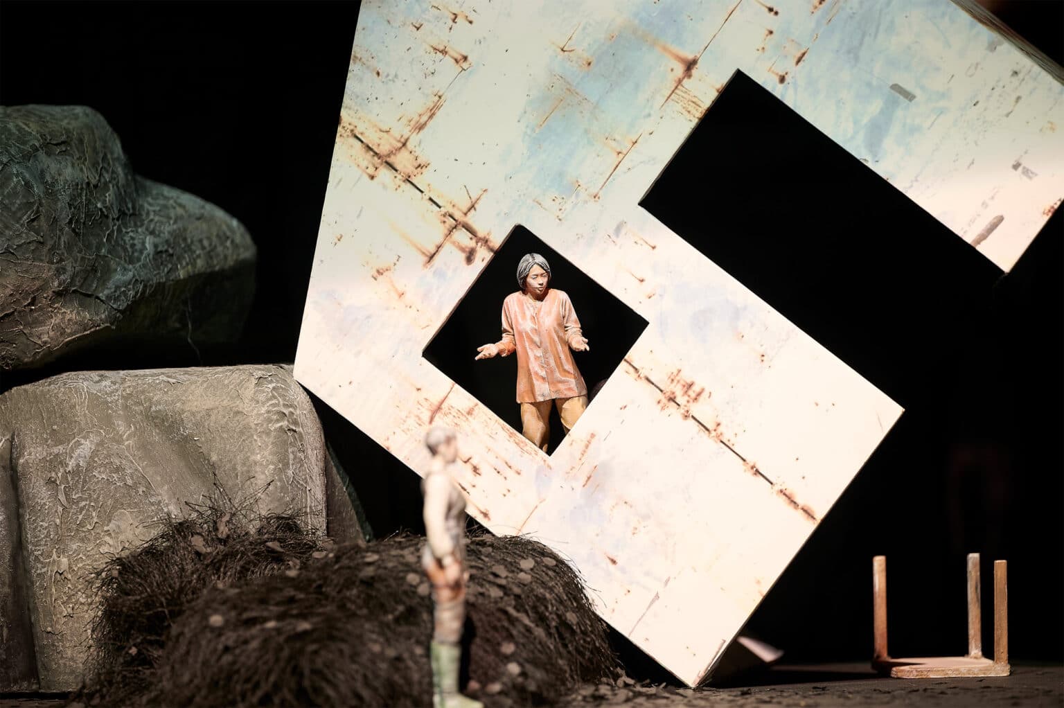 Regisseurin Ivana Sajević, die 2024 mit „Verbrechen“ von Ferdinand von Schirach erstmalig am Theater Koblenz für eine Textbearbeitung und Inszenierung verantwortlich zeichnete, fasst auch in „SIE“ Puppentheater im weitesten Sinne auf: So sollen diverse Puppenformen und Figuren zum Einsatz kommen, dazu Masken und Objekte, Projektionen, Sound-Effekte und Musik. Im Unterschied zu Schauspiel bietet das Puppentheater für diese Idee viele weitere künstlerische Möglichkeiten, weil mit Raum, Zeit, Orten und Körpern schneller, überraschender, fantastischer und brutaler umgegangen werden kann.